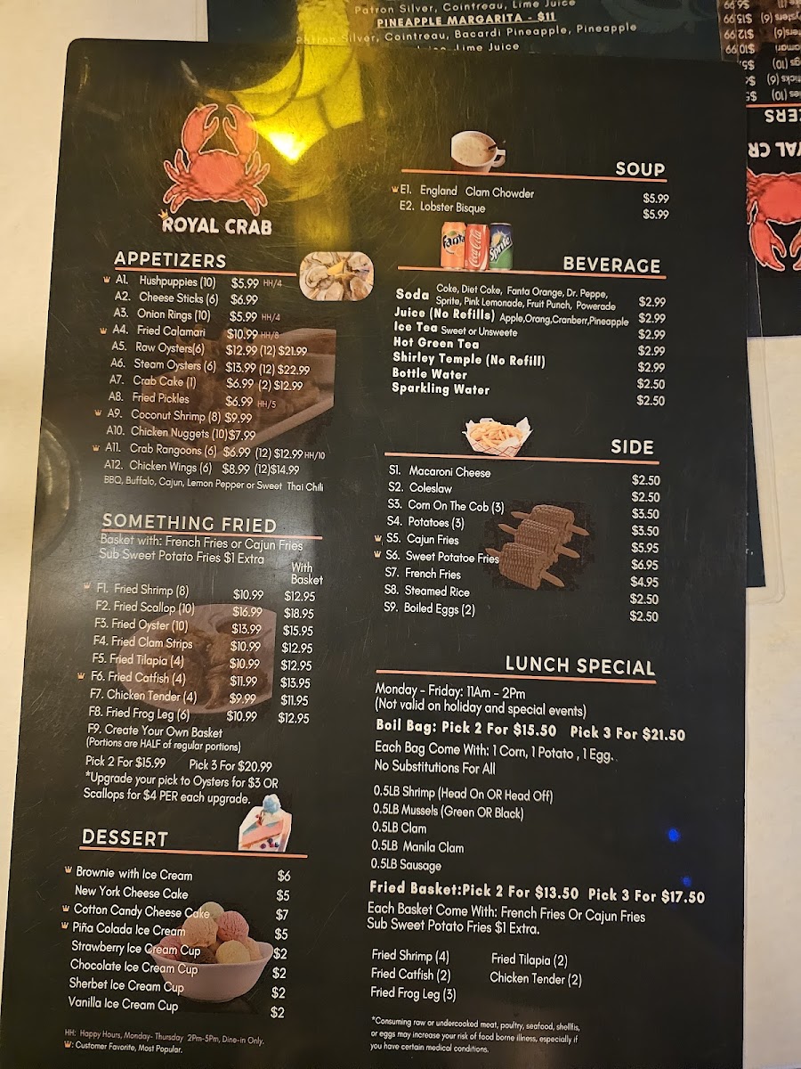 Customers rave about the inviting atmosphere and attentive service. From perfectly fried calamari to the signature royal seasoning, each dish promises to tantalize your taste buds. While some guests experienced initial service hiccups, countless reviews highlight the remarkable turnaround thanks to attentive staff. The ambiance is ideal for romantic evenings or family gatherings, ensuring that every visit feels special. Let Royal Crab become your go-to destination for an unforgettable seafood experience in Oklahoma City!